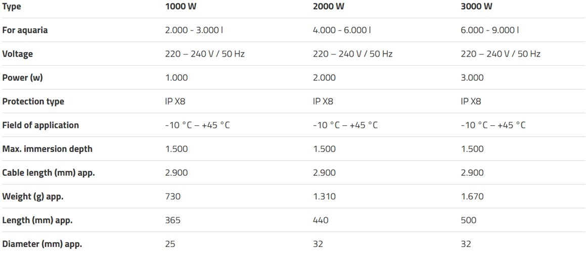 The Titanium Heater PRO is specially designed for use in aquaria and must only be operated under water.