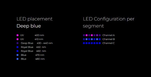 Thanks to the seven different and very high-energy LED colors, the PULZAR G3 Deep blue penetrates deeper into the UV / blue range and thus reaches a new level of fluorescence of corals and fish. The LED configuration takes your saltwater aquarium to the next level in terms of color intensity.