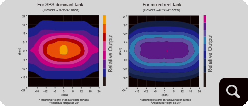 | Coverage | Up to 48” x 24” Mixed Reef / 36" x 24" for SPS Dominant Systems |