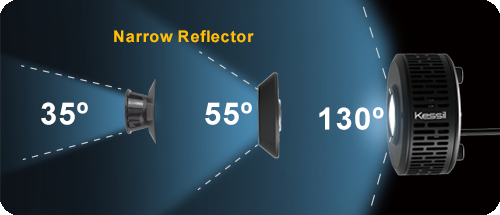 Patented Dense Matrix LED technology concentrates multiple LED chips into a single array, creating a powerful and penetrating light source with wide coverage. The maximum penetration can reach 24" to 30" beyond the water's surface for most reefs. Penetration can be further enhanced by using the narrow reflector (optional accessory).
